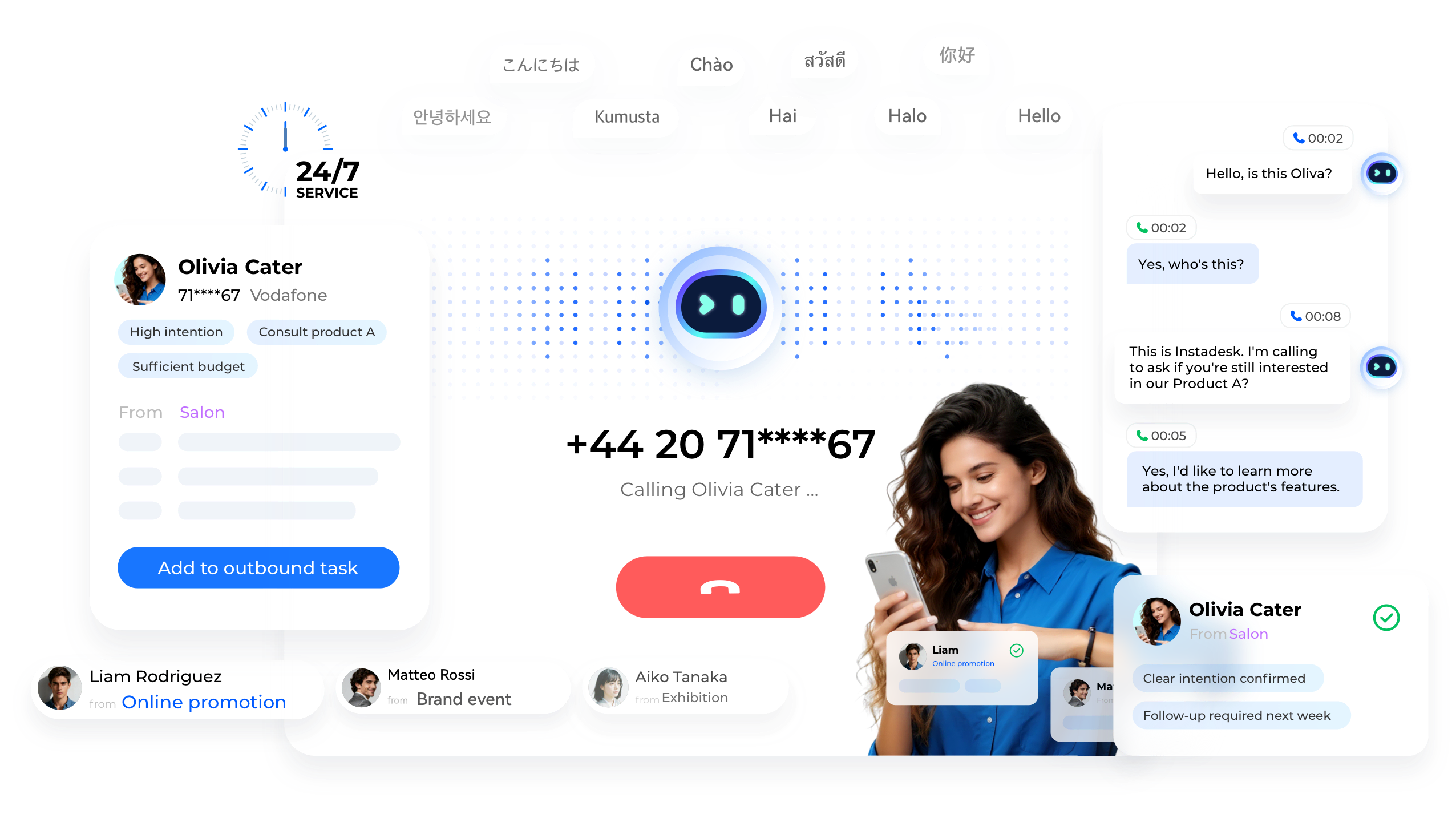 24/7 intelligent call answering with human-like interaction, resolving inquiries instantly without agent intervention