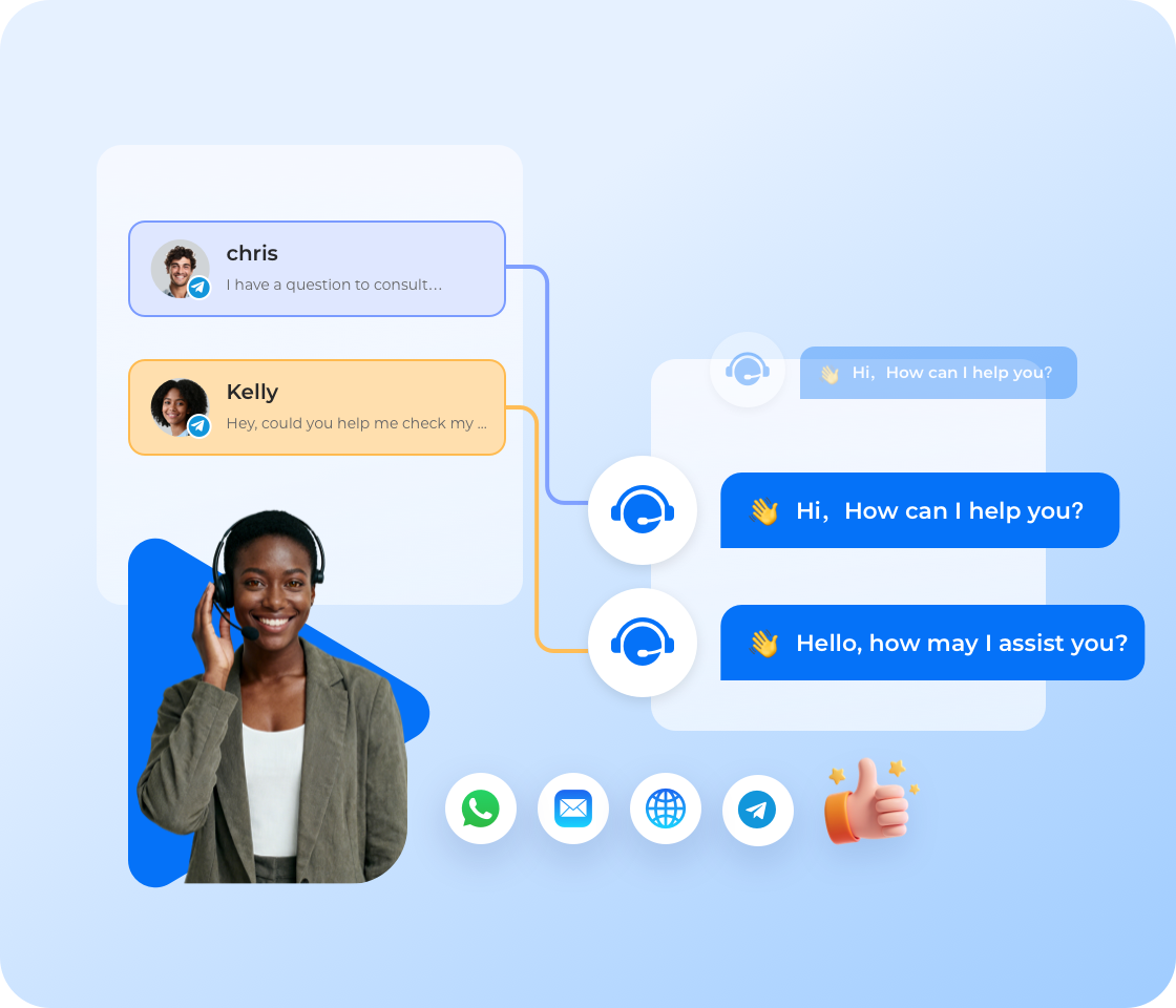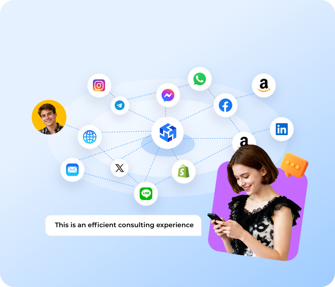 Comprehensive coverage of customer touchpoints, ensuring no customer inquiries are missed, supporting email, SMS, official website, app, and WhatsApp, Facebook, Instagram, Line, Amazon, eBay, etc...