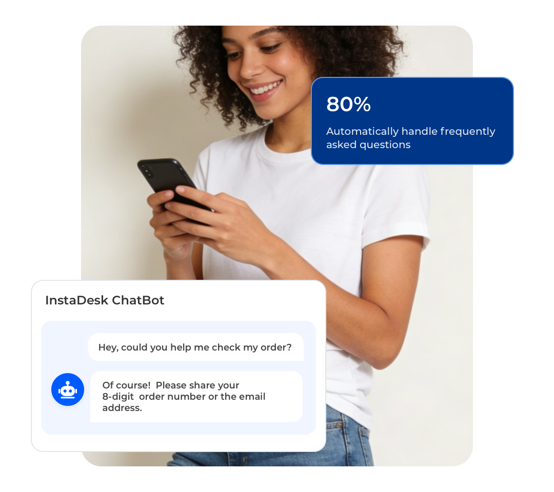 Customers inquire about network setup or billing issues via web chat. InstaDesk TextBot quickly identifies problems through natural language understanding, providing automated solutions and improving first-contact resolution rate.