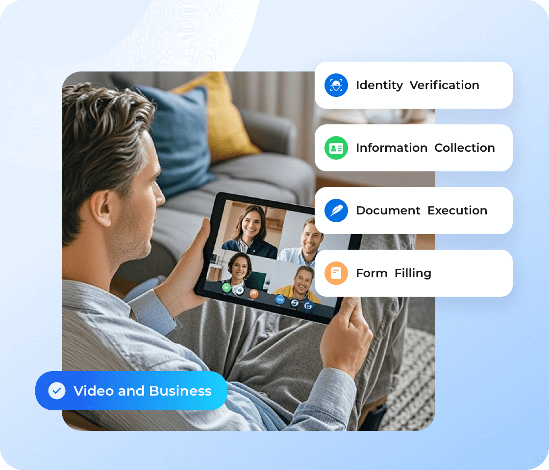 Facilitates direct completion of identity verification (facial recognition), information collection (document OCR), document execution (e-signature) and form filling during video calls, delivering one-stop end-to-end business transaction processing.