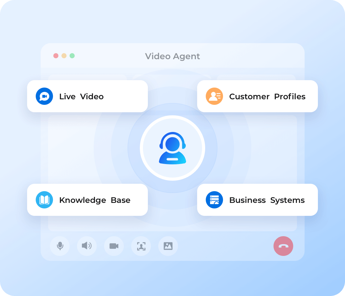A single-pane console integrates live video, customer profiles, knowledge base, and backend business systems. AI-powered insights and contextual recommendations empower agents with everything they need to deliver expert, efficient, and compliant service.